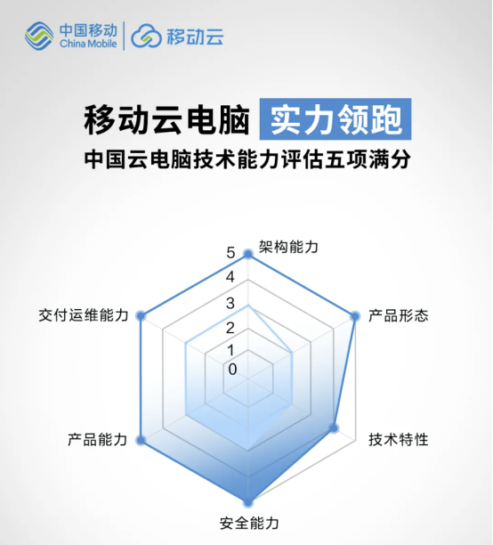信息时代,PC设备作为连接人与数字世界的“端口”,成为人们信息处理、数据交互和业务开展的核心载体。然而经济社会数字化推进的不断加速,传统物理电脑终端逐渐暴露出硬件迭代难、使用成本高、能耗损耗大、批量运维难、安全防护弱等一系列“瓶颈”问题。而移动云电脑作为一种基于云端虚拟化技术打造的新型终端,凭借集约化、绿色化、智能化等诸多优势,成为个人或组织部署终端设备时的全新选择。 作为国内头部云服务商,移动云拥有得天独厚的云网资源与业界领先的技术优势,针对传统PC的各类痛点,移动云打造出具备敏捷弹性、管理高效、安全可靠等优势的移动云电脑,并不断对产品的形态、功能等进行优化迭代。根据IDC近期发布的《中国云电脑技术能力评估,2025》报告,移动云电脑在架构能力、产品能力、产品形态、安全能力、交付运维能力五项评估维度中,均获得满分,是云电脑行业当之无愧的领导品牌。